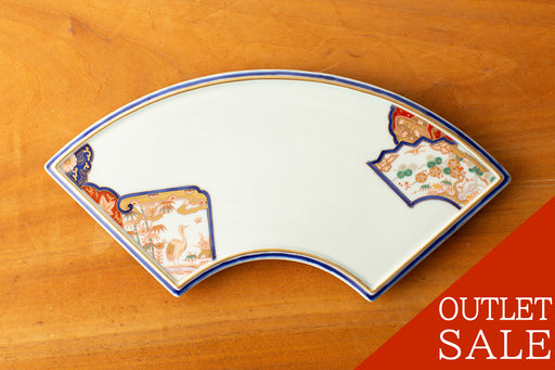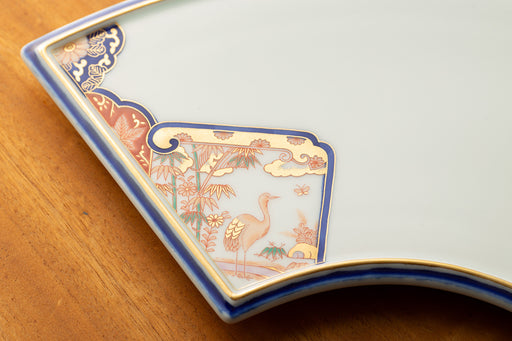 【アウトレット】松竹梅鶴絵 扇型皿(横32.1cm)