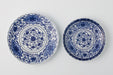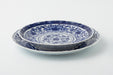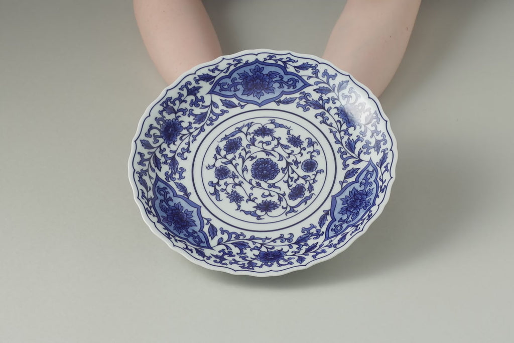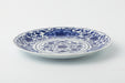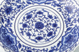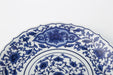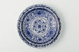 牡丹・菊・蓮・撫子・薔薇の花々をおしみなく散らし、唐草で優雅につないだ品格ある染付のプレートです。
